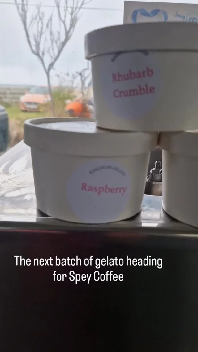 Made in small batches at the mouth of the River Spey, Kingston Gelato is a little seaside shack serving big scoops of joy. The collies you see on the logo are our rescue dogs Fitz and Nyx, who have been sharing our adventure since moving up from Aberdeen last year. While they sleep after a big walk, we churn bold, creamy flavours using only plant-based and cruelty-free ingredients. We also use local fruit and suppliers where possible.
